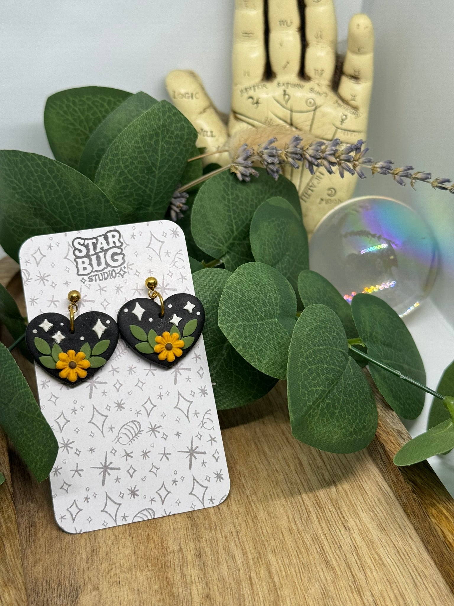 all earrings are made with a polymer clay base and color/detail is added using acrylic paint, liquid clay, and/or soft pastels. all earrings are sealed with a clear matte top coat unless otherwise stated in individual listings.
